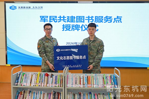 3月23日上午,东坑图书馆与驻地部队共建的“军民共建图书服务点”揭牌启用。东坑镇党委委员钟浩华、镇文化服务中心主任莫圆圆、镇武装部副部长莫剑飞、东... 了解更多》
