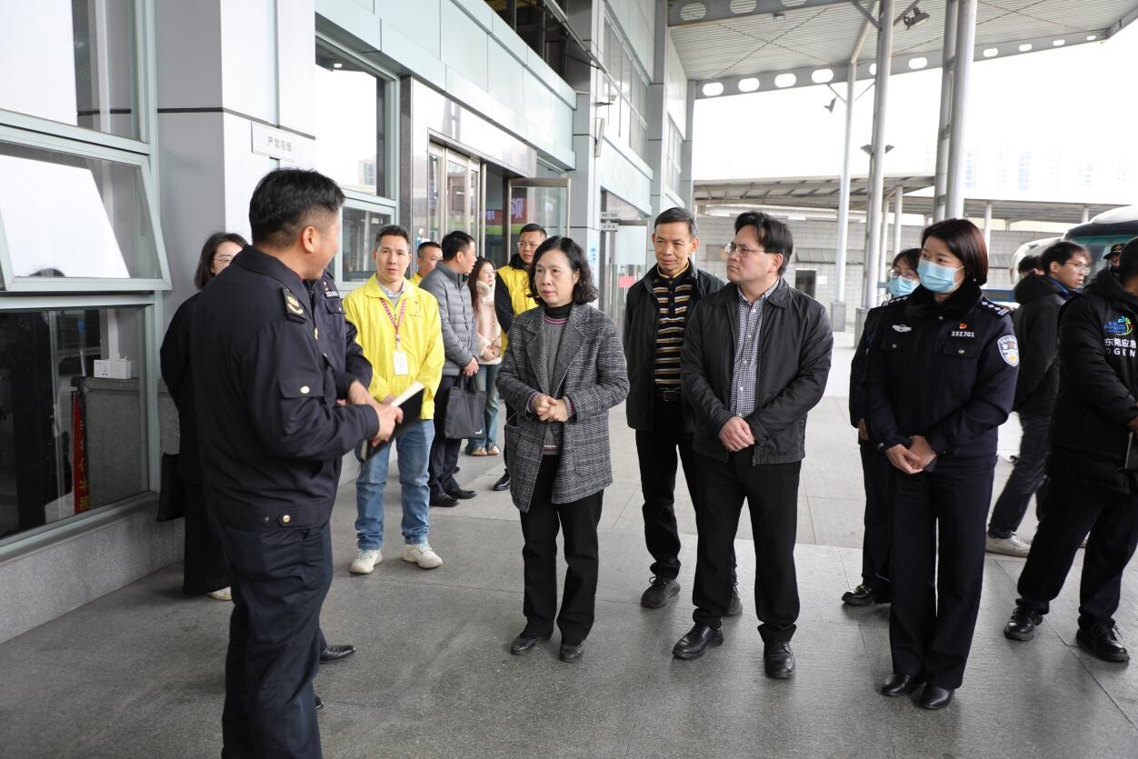 2024年1月26日上午,寮步镇党委书记赵智佳率队到市汽车客运东站,对春运工作进行实地督导检查。副镇长、公安分局局长胡敏,副镇长李杰荣,镇交警、交通、应急等相关部门负责人陪同检查。