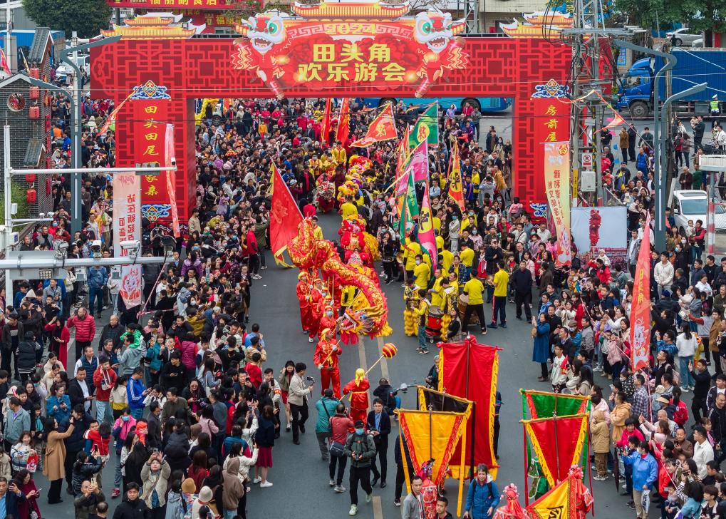 立足田头角“百年游会”特色文化品牌,田头角村深入挖掘“正月十五游田头、正月十六游田尾”民俗文化底蕴,围绕文化风俗、基层治理、产城融合等,强化与常平田尾村联动,从“婚男嫁女”到茶话交流,力争申报市级非遗项目,打造“从田头到田尾”镇域协调发展典型亮点。