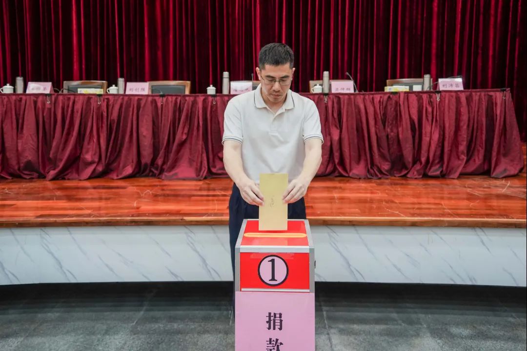 石排镇党委书记詹志斌宣布仪式启动,带领参会人员现场捐款。