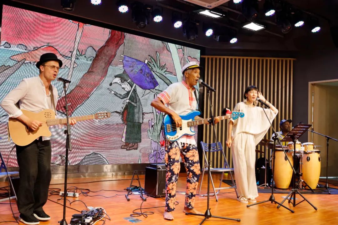 见面会上,音乐会中方导演、演员陈芙蓉,作曲、主唱、主吉他手穆萨·迪亚洛等主创人员化身为孩子们的音乐玩伴和向导,通过简单有趣的戏剧互动游戏、合唱等形式,让孩子们亲身体验音乐剧表演的魅力,大家跟着音乐一起舞动、歌唱,感受角色和音乐的联结。在轻松愉快的氛围中,简单的旋律化作神奇的纽带,让每一位参与者都沉浸在音乐带来的纯粹快乐与无限想象之中。