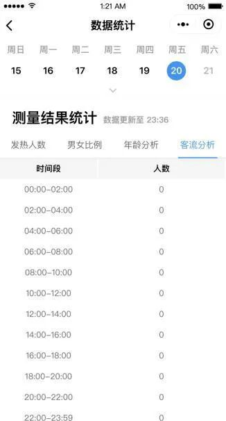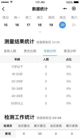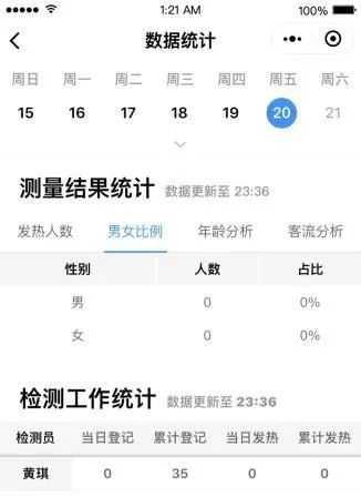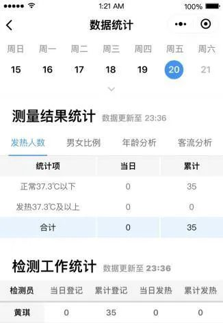 4)查看数据:公共场所检测员进入“体温检测”页面,点击“数据统计”即可查看检测数据。
